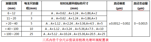 目前主要使用标准高等级的光滑环规进行三爪内径千分尺示值误差测量,这就要求客户配置一系列光滑环规。