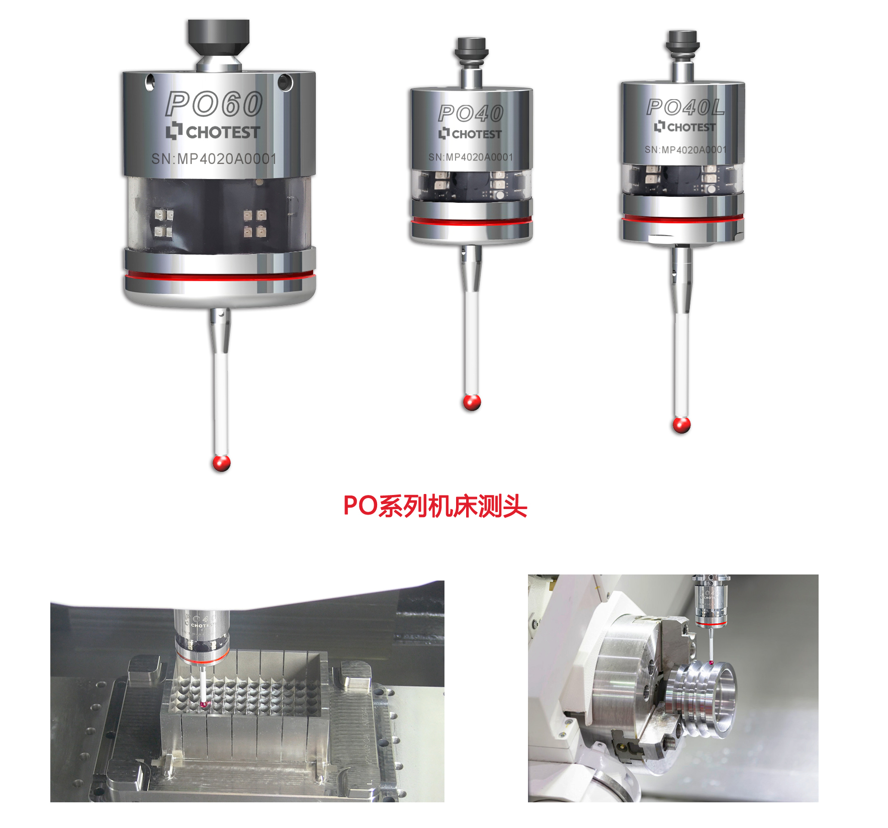 PO系列机床测头重复性好,抗干扰能力强,360°范围超高精度测量,轻松实现工件分中、找正、自动补偿、尺寸超差报警等需求。