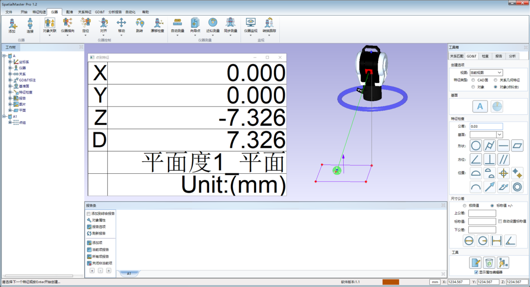 SMT提供关联特征与GD&T特征检查功能,对这些特征执行测量,随着每次测量的完成,SMT会实时更新计算结果。