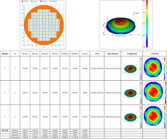 ◆ 集成厚度测量模组和三维形貌、粗糙度测量模组,使用一台机器便可完成厚度、TTV、LTV、BOW、WARP、粗糙度、及三维形貌的测量。