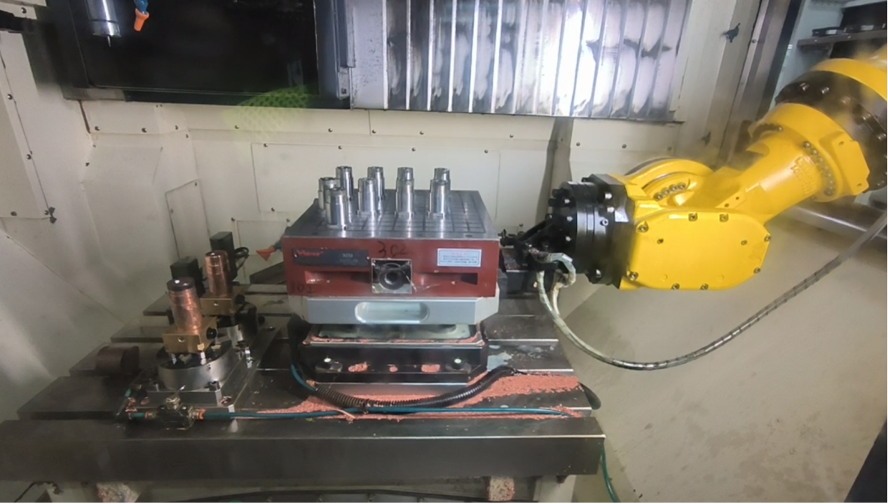 1. 加工前机器人自动上料,红外线测头实时测量确认预装夹位是否正确;
