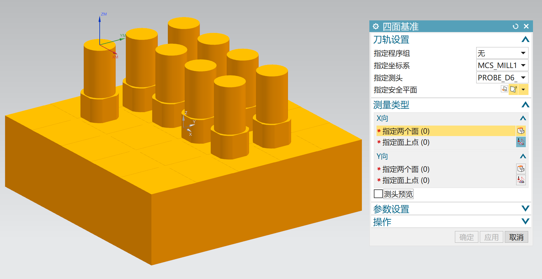 软件配置:发那科制定测量宏程序以及UG外挂自动测量分中软件。