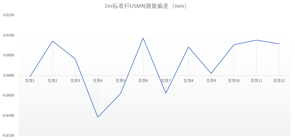 数据分析:从图13折线图可以看出,在长15m宽7米的测量场内,USMN组网测量2m的标准杆可以满足10μm的精度要求。