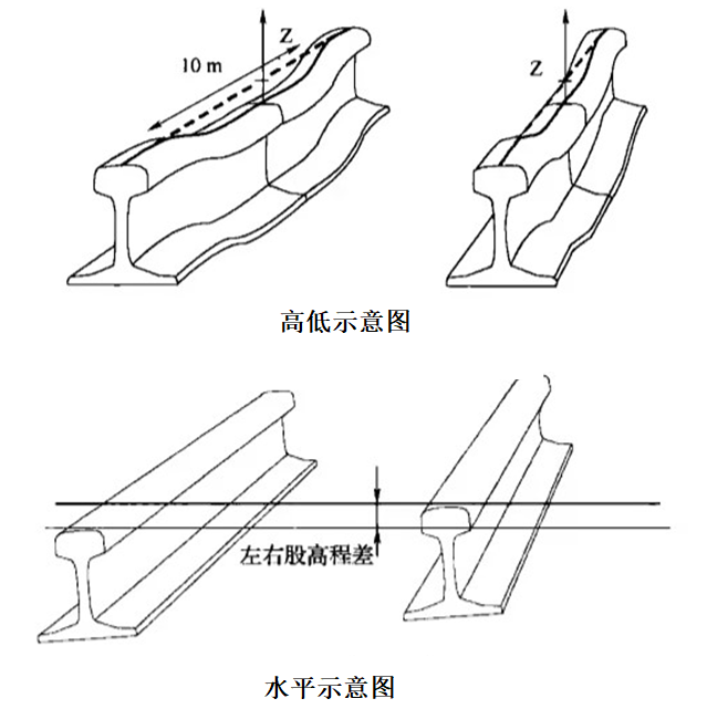 在列车高速运行中,车轮与钢轨间会产生不断变化的复杂载荷,钢轨上细微的凸起都会给车轮和钢轨造成巨大的冲击,因此定期对轨道的几何形位进行检查,可以更好的了解轨道状态,及时调整轨道状态,能有效的保障列车运行安全。轨道的几何形位是指轨道的几何形状、相对位置和基本尺寸。轨道的几何形位的基本要素中包含:轨距、水平、高低和轨向等。