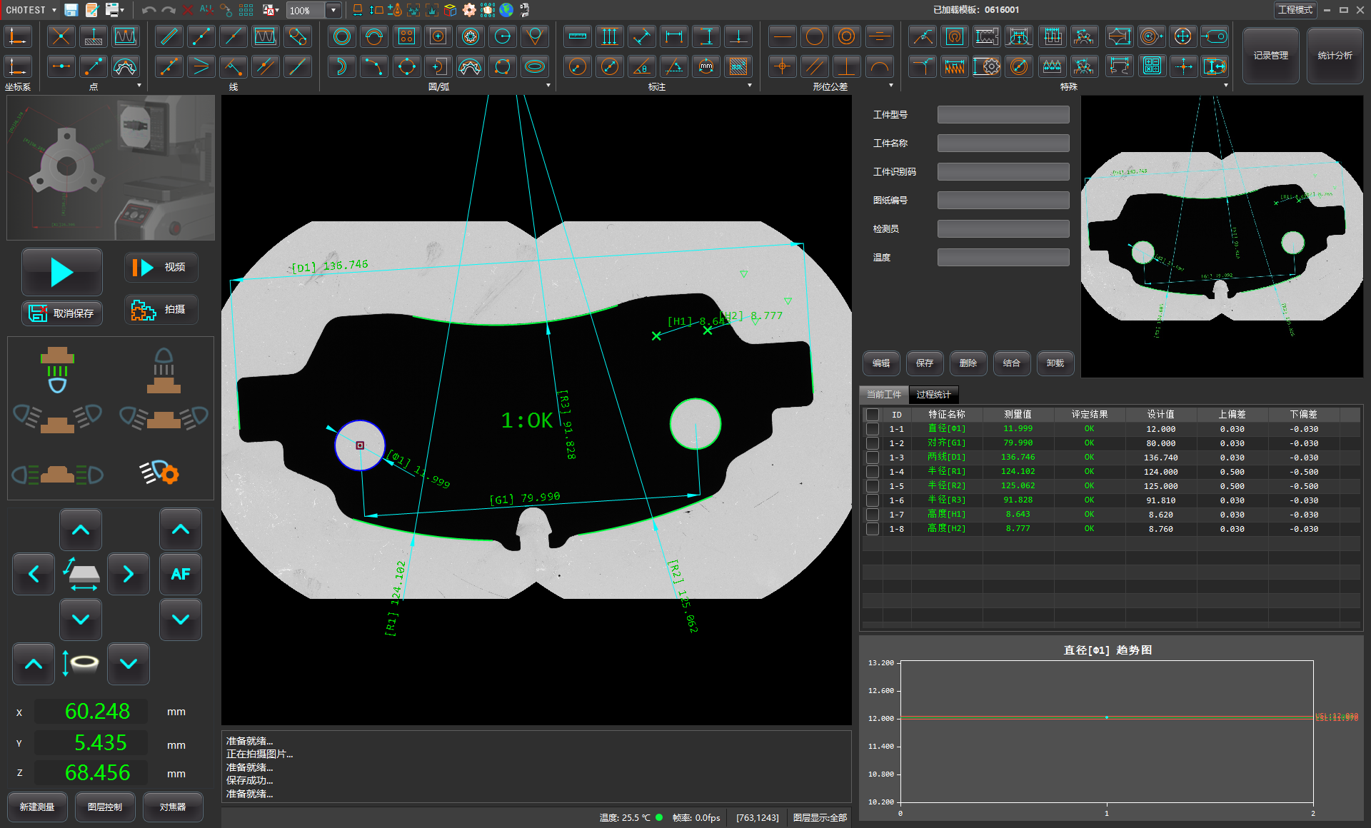 闪测仪家族蓝颜gtv种类丰富,有桌面型、落地式、复合型等,最高测量精度可达±0.7um,最大测量行程可达800*600mm,满足工业制造领域各行业的快速尺寸测量需求。