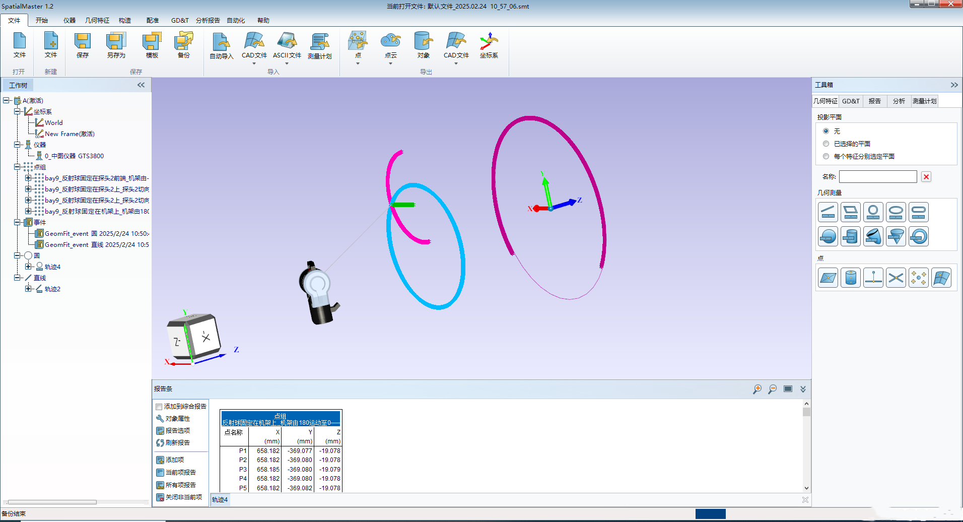 CT设备控制各测量部件进行旋转和平移运动,与此同时,SpatialMaster软件选择连续时间测量模式,持续采集各运动部件的运行轨迹数据,并实时输出各测量点位信息。