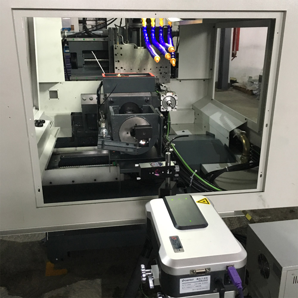 刚开始的时候,由于走心式精密数控机床内部构造复杂,没有一个较好的平台架设激光干涉仪的镜组,我们的技术人员用一些辅助工具轻松解决了这些难题,架设好镜组,对数控机床进行检测,并得到了直观精确的检测结果。