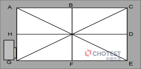 对角线法测量平面度时,若激光器位于G点出,光线射向E点时,建议按照EA、CA、DH、EG、AG、BF、CE、GC的次序进行测量。