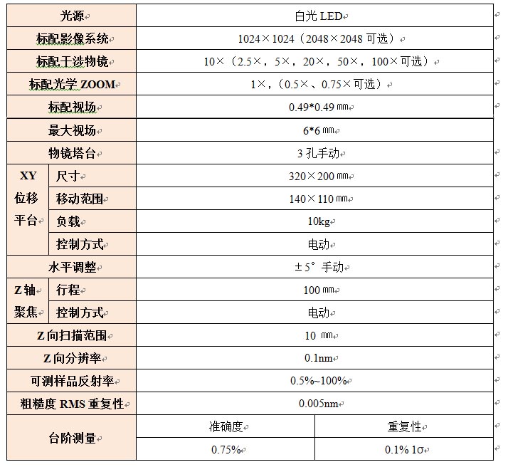 白光干涉表面三维轮廓仪主要技术指标: