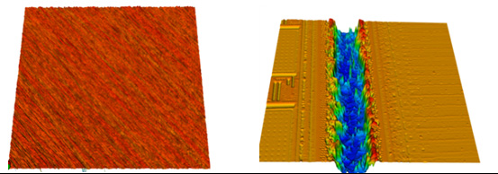 1)    样件测量能力:白光干涉模式可在单一扫描模式下实现从超光滑到粗糙、镜面到全透明或黑色材质等所有类型样件表面的测量,可测量0.1nm及以下的粗糙度和纳米级的台阶高度;共聚焦模式尖具备锐角度测量能力,可测量倾角接近90°的微观形貌。