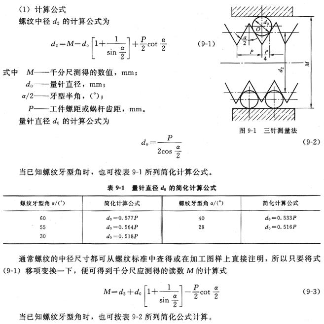 三针测量法是一种间接测量螺纹中径的方法。测量时,将三根精度很高、直径相同的量针放在被测螺纹的牙凹中,用测量外尺寸的计量器具如千分尺、机械比较仪、光较仪、测长仪等测量出尺寸 。