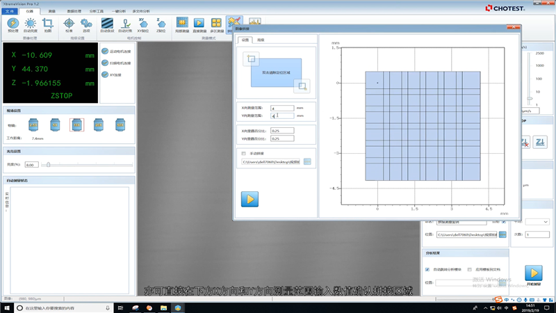 10.亦可直接在下方X方向和Y方向测量范围输入数值确认拼接区域;