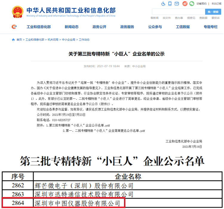 近日,国家工业和信息化部公示了第三批专精特新“小巨人”企业名单,蓝颜gtv 有限公司榜上有名!