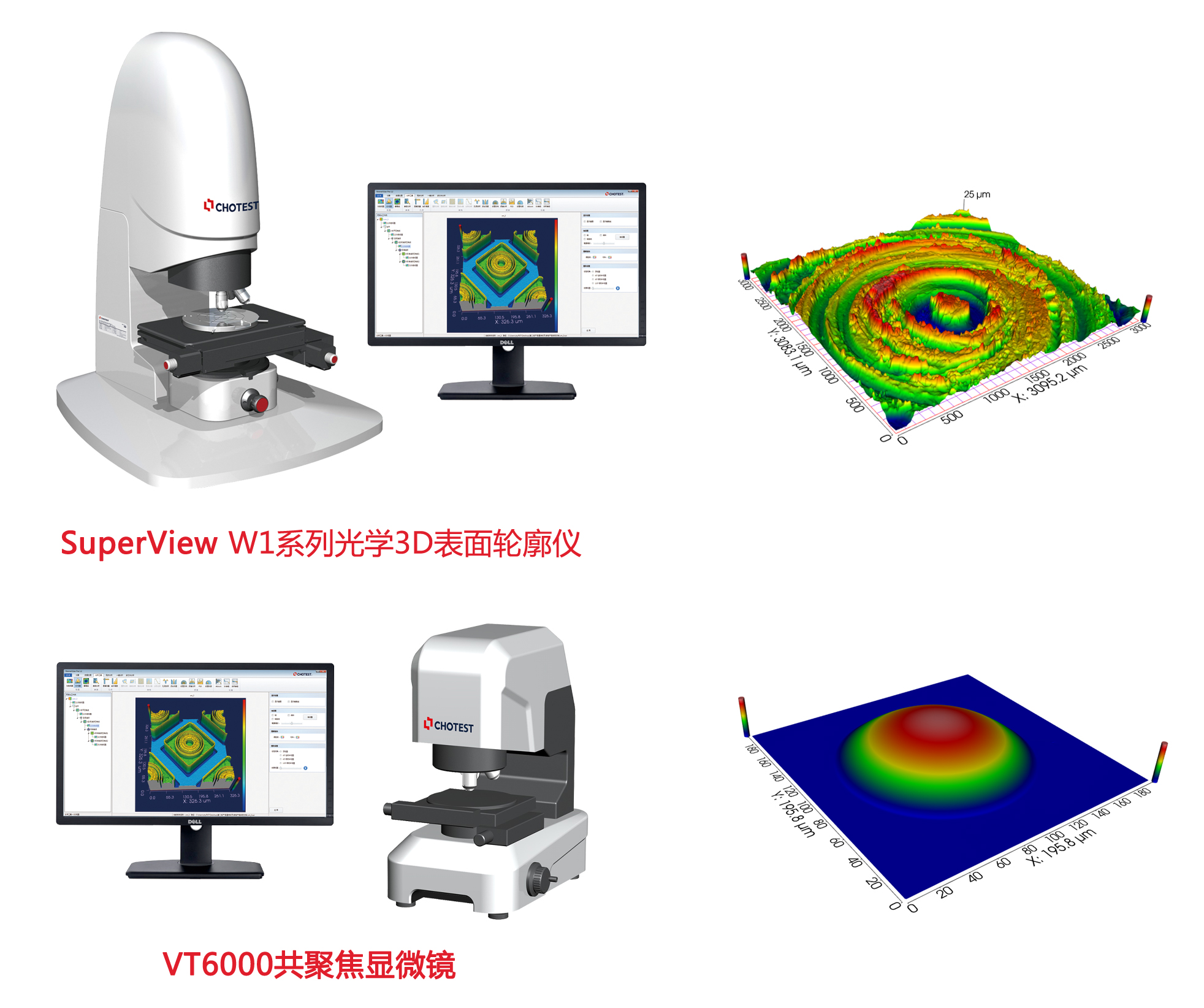 SuperView W1光学3D表面轮廓仪和VT6000共聚焦显微镜可轻松测量各类从超光滑到粗糙、低反射率到高反射率的物体表面,从纳米到微米级别工件的粗糙度、平整度、微观几何轮廓、曲率等。