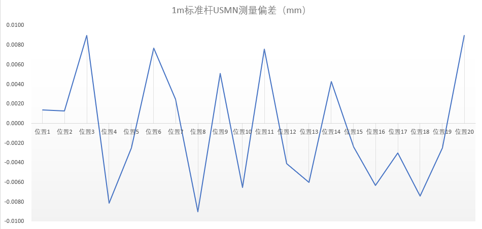 数据分析:从图13折线图可以看出,在长15m宽7米的测量场内,USMN组网测量2m的标准杆可以满足10μm的精度要求。