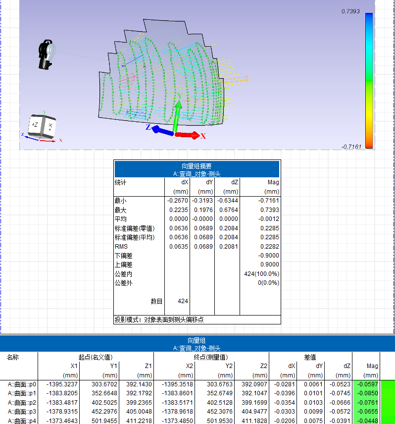 将采集完的点数据与三维数模的进行对比分析,精确计算出曲面轮廓度的偏差值,并生成直观的色差图,清晰展示曲面各部位的偏差情况。