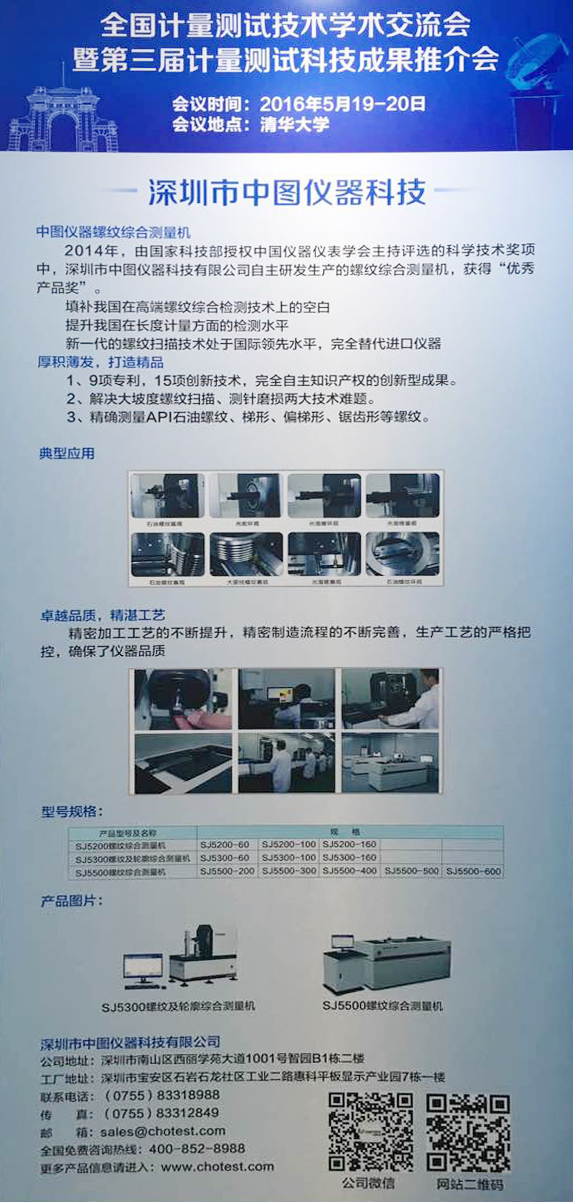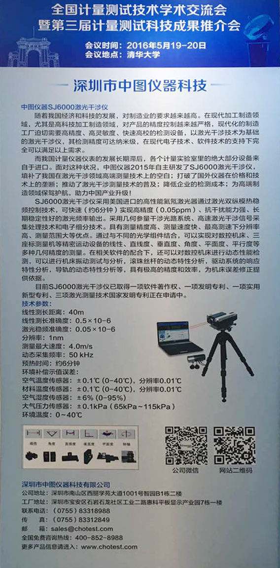 全国计量测试技术学术交流会暨第三届计量测试科技成果推介会于2016年5月19日-20日在清华大学举行,
