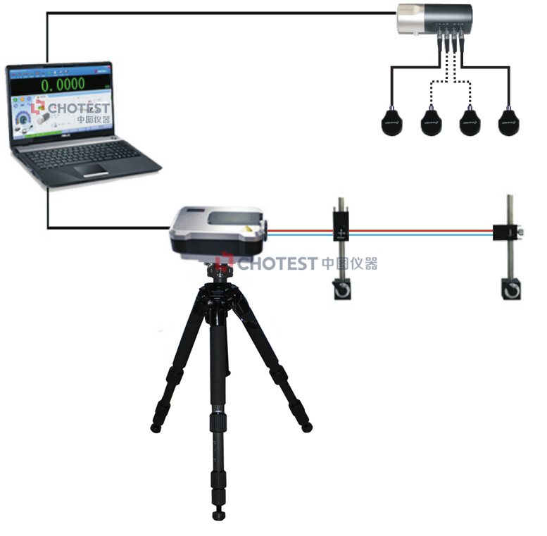 就拿测量机床线性精度为例吧,首先,把三脚架和云台调整好,然后拿出激光器主机放置在云台上面固定好,连接好电源和数据线,再拿出线性测量镜组,架设在机床的被检轴上,在架设镜组的时候,要多次调试干涉镜与反射镜对准激光器主机发射出的光路,调整好线性镜组的位置后,把环境补偿单元的探头放置在被检轴的不同位置,连接数据线到电脑端,在电脑上设置好检定软件。做好准备工作就可以开始操作机器从起始位置移动到下一个目标位置,在不同的位置暂停几秒钟,由激光干涉仪进行测量和采集数据。检定软件有完善的用户界面,会按顺序引导您完成检测的各个步骤。