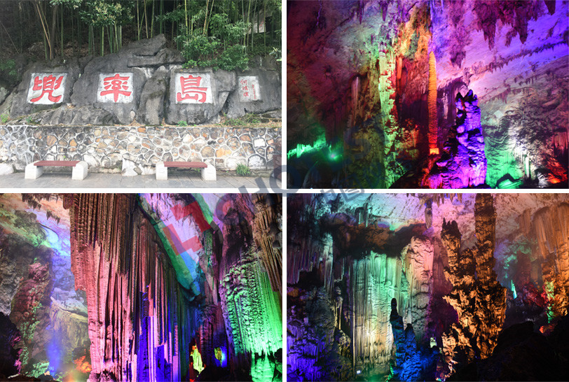 第一天我们来到东江湖畔的兜率岛,在兜率岛上有一座天然形成的溶洞名为“兜率灵嚴”。当进入到溶洞里时,外界的燥热难耐瞬间化为丝丝清凉,丝毫感觉不到这是仲夏时节。溶洞内五彩斑斓的灯光,宛转悠扬的古典音乐,千奇百怪的钟乳石,还有水滴在岩石上发出的脆响,沁人心脾,让人流连忘返。