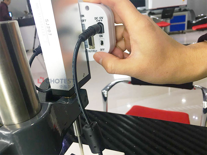 在检测工作之前,确保周围环境无明显震动,无扬尘,环境温度变化不超过1℃。先用无尘布蘸无水酒精将高度计的陶瓷台架表面和高度计测头擦拭干净,检查高度计是否放置正确。将高度计的电源线以及数据线插在对应的接口,打开数显装置后面的开关启动高度计,数显装置屏幕上会有跳动的数字出现。