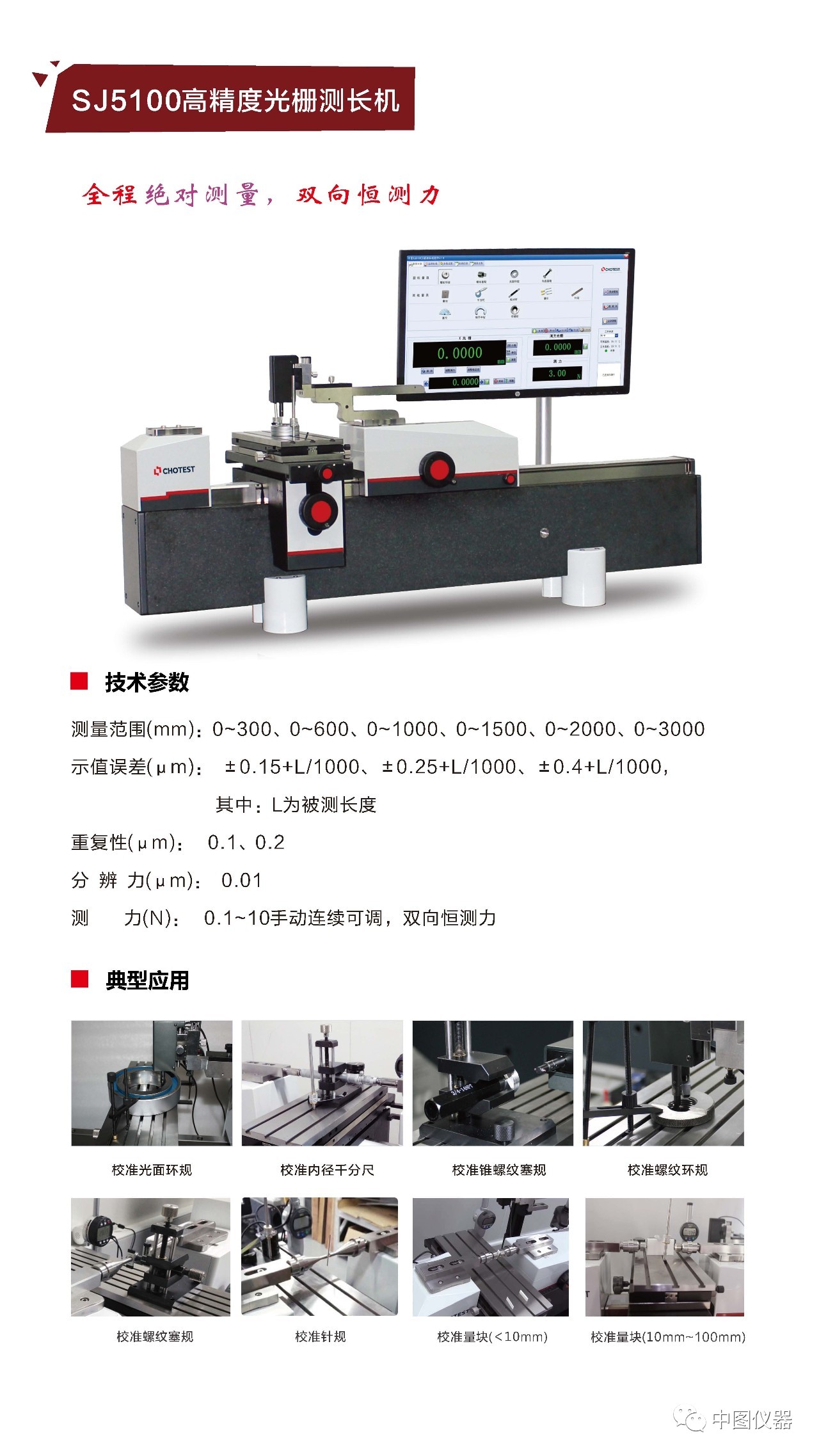 SJ5100系列高精度光栅测长机:螺纹/光面量规、量块、外径千分尺、针规、指示表、花键规、校对棒等全程绝对测量。