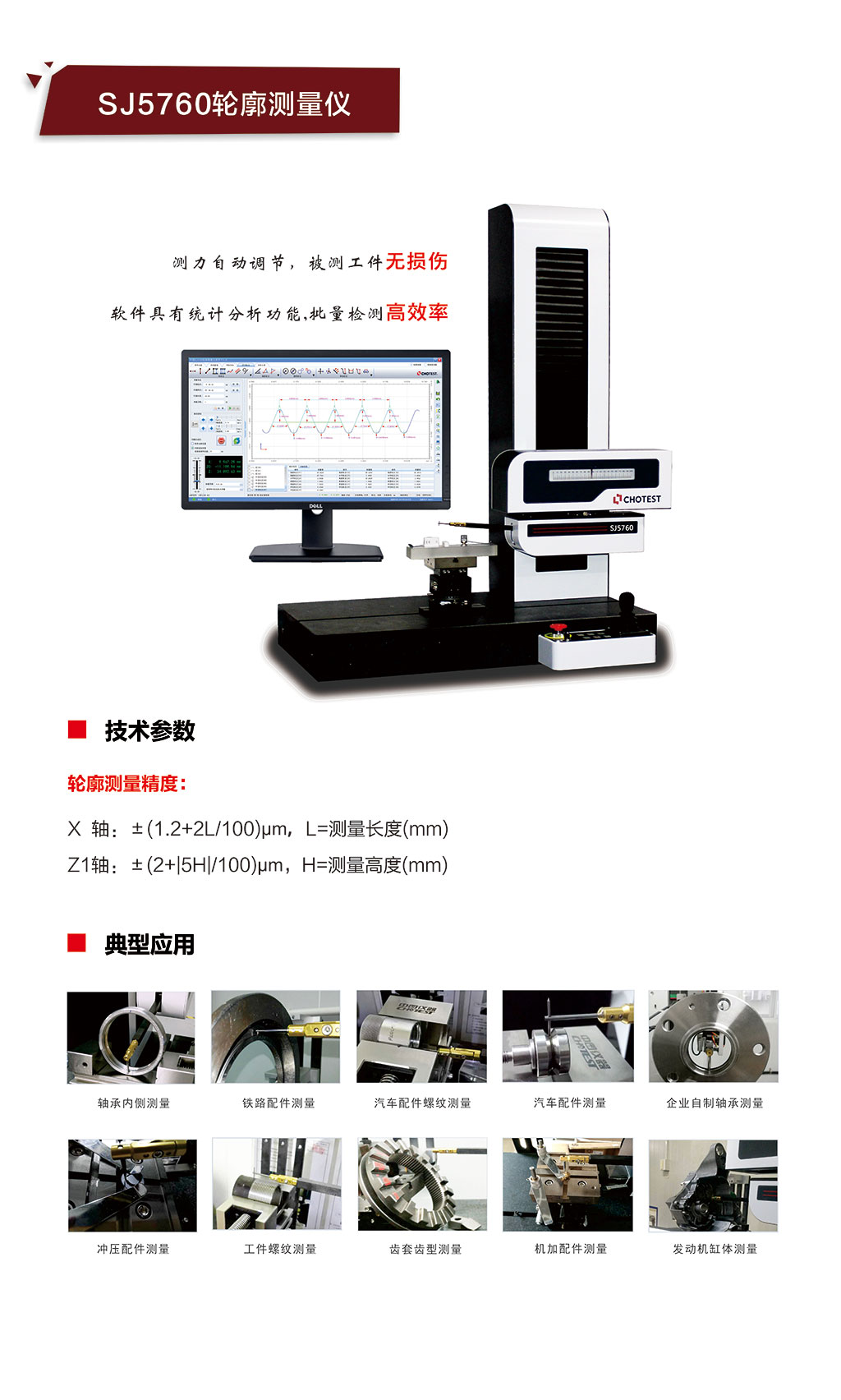 SJ57系列轮廓测量仪在机床零部件、机床附件表面轮廓尺寸和粗糙度检测方面有着广泛应用,SJ57系列轮廓测量仪能实现同批次相同类型零件进行批量测量,并具有SPC统计分析功能,深受客户好评。